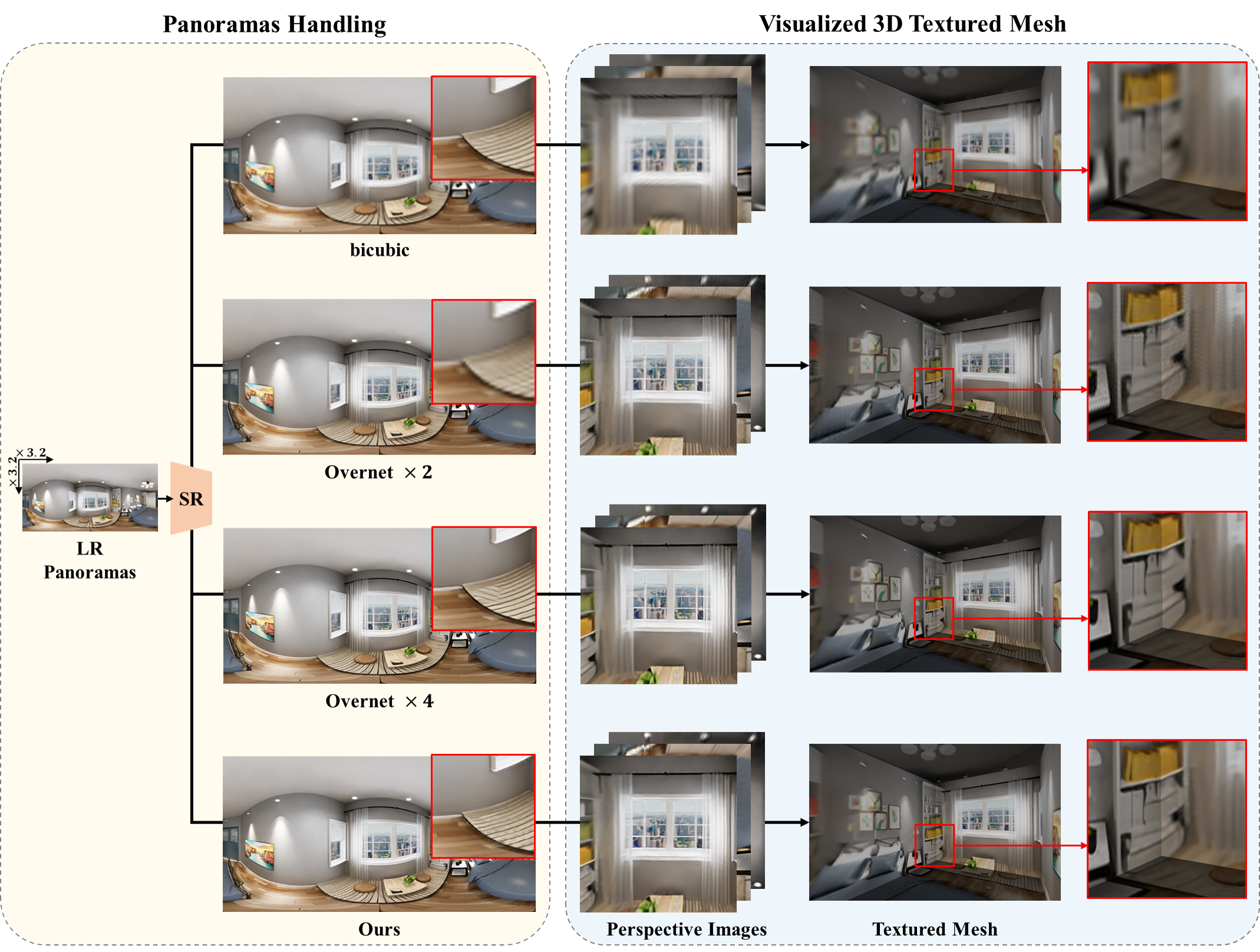 A summary of the method for processing panoramics with the SR technique. Please zoom in to check more details.